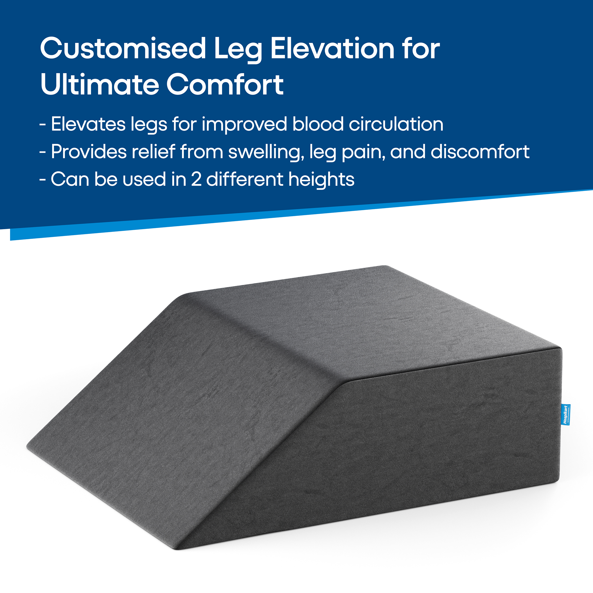 Made from premium high-density super-soft foam, the pillow delivers soft, long-lasting support, ensuring you stay comfortable for hours. It is perfect for alleviating discomfort caused by varicose veins, phlebitis, sore calves, and other leg-related conditions. The gradual slope and adjustable height offer enhanced versatility, allowing you to find the perfect elevation to promote healthy leg posture.