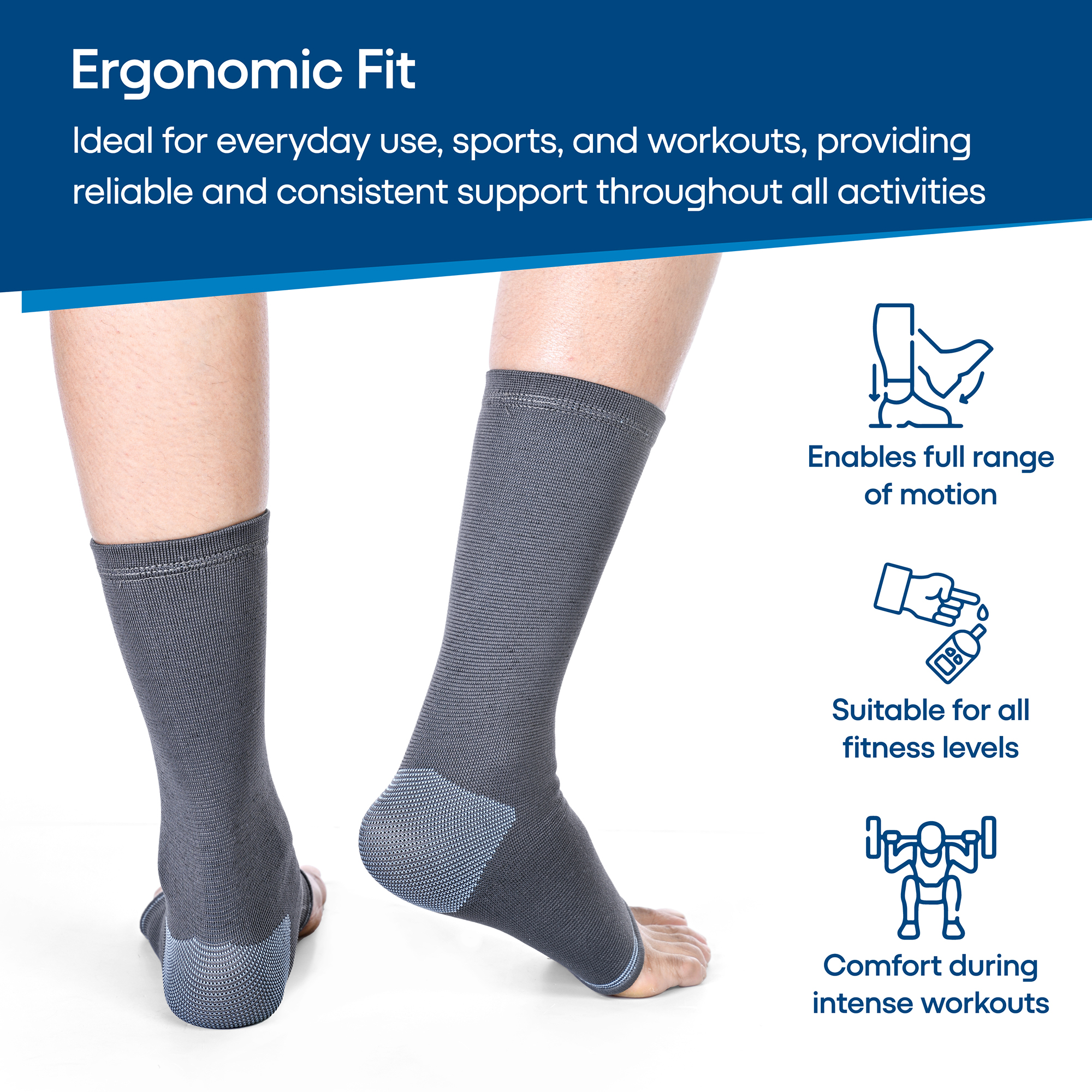The HOSPIKART Ankle Compression Sleeve is designed to provide both relief and performance enhancement. Crafted to alleviate heel pain and support the ankle, it helps combat plantar fasciitis, offering comfort and stability during movement. The compression sleeve ensures optimal ankle support, reducing the risk of injuries while keeping the ankle joint stable. Ideal for those dealing with ankle or heel concerns, it allows you to stay active with confidence. Made from breathable, stretchable fabric, it offers a perfect fit and comfort for daily use or sports activities.