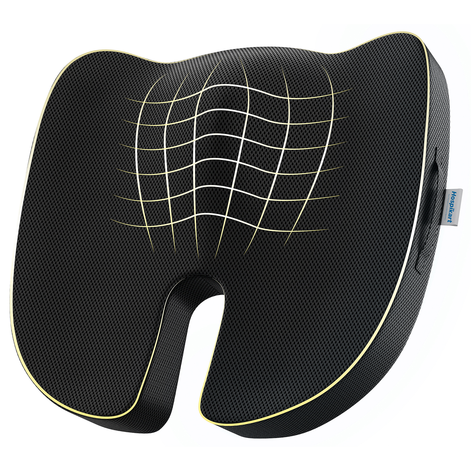 The HOSPIKART Cool Gel Memory Foam Plus Coccyx Seat Cushion is designed to provide ultimate relief for tailbone pain and improve sitting posture. Featuring a contoured ergonomic design with a coccyx cutout, this cushion suspends the tailbone to alleviate pressure, making it an effective solution for conditions like Coccydynia. The cool gel memory foam adapts to your body shape, ensuring consistent support and comfort during long sitting hours, while promoting proper spinal alignment and proper hip support. Made from premium cool gel memory foam, the cushion rebounds after each use, maintaining its shape and offering all-day comfort without flattening. The breathable premium velvet cover enhances airflow, preventing heat buildup and keeping you cool and comfortable. Whether used on office chairs, at home, in wheelchairs, or on airplane seats, this versatile cushion is the perfect addition to any seating arrangement, offering relief for sensitive areas and improving posture. Stay comfortable and pain-free with the HOSPIKART Cool Gel Memory Foam Plus Coccyx Seat Cushion.
