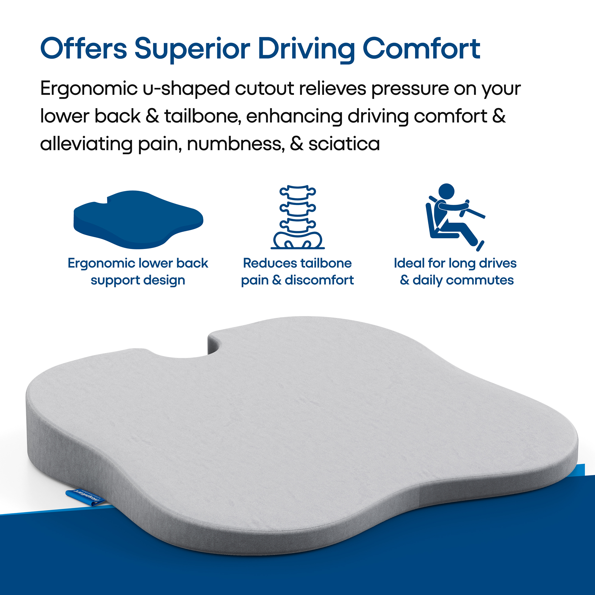 Relieves pressure on the lower back and tailbone, offering comfort and support