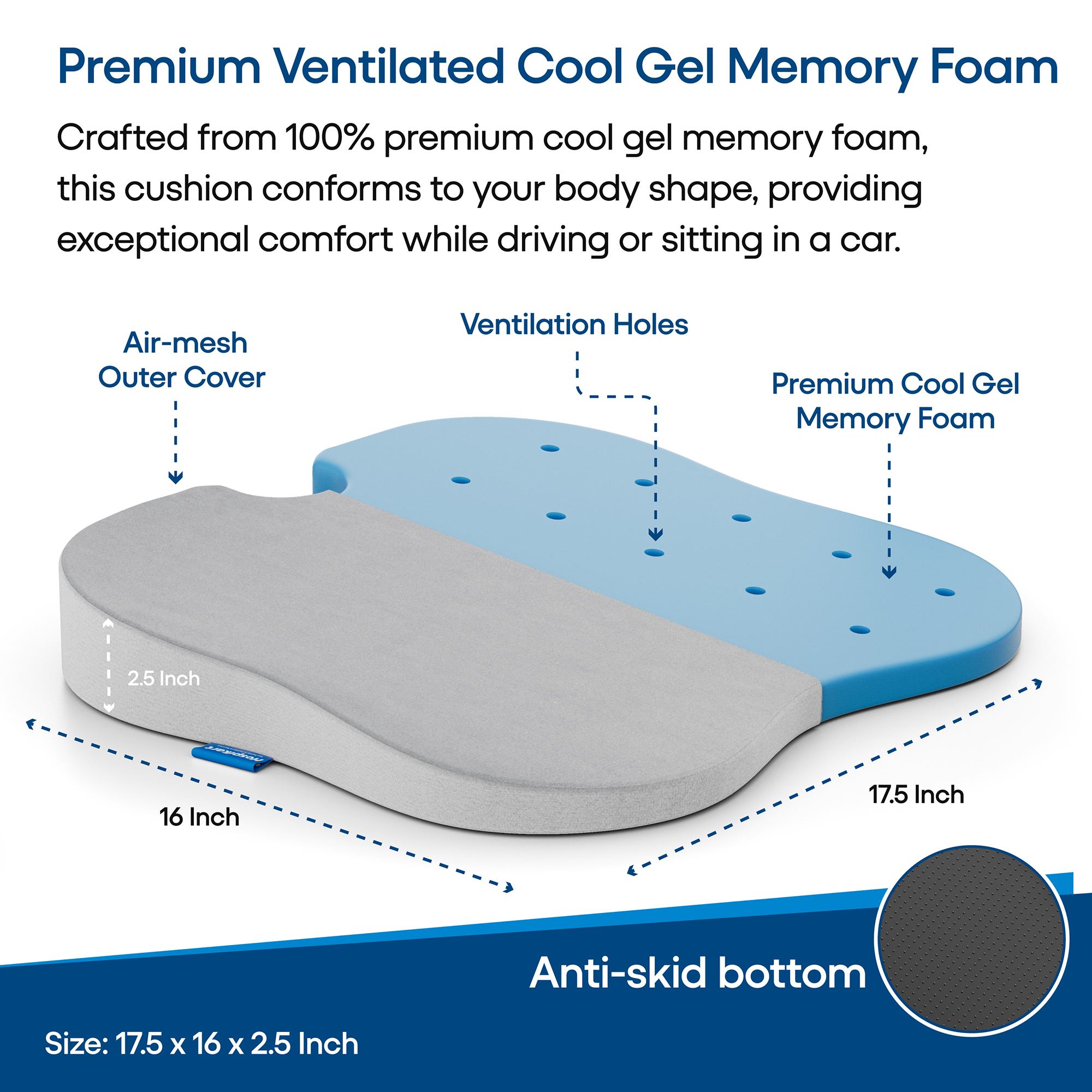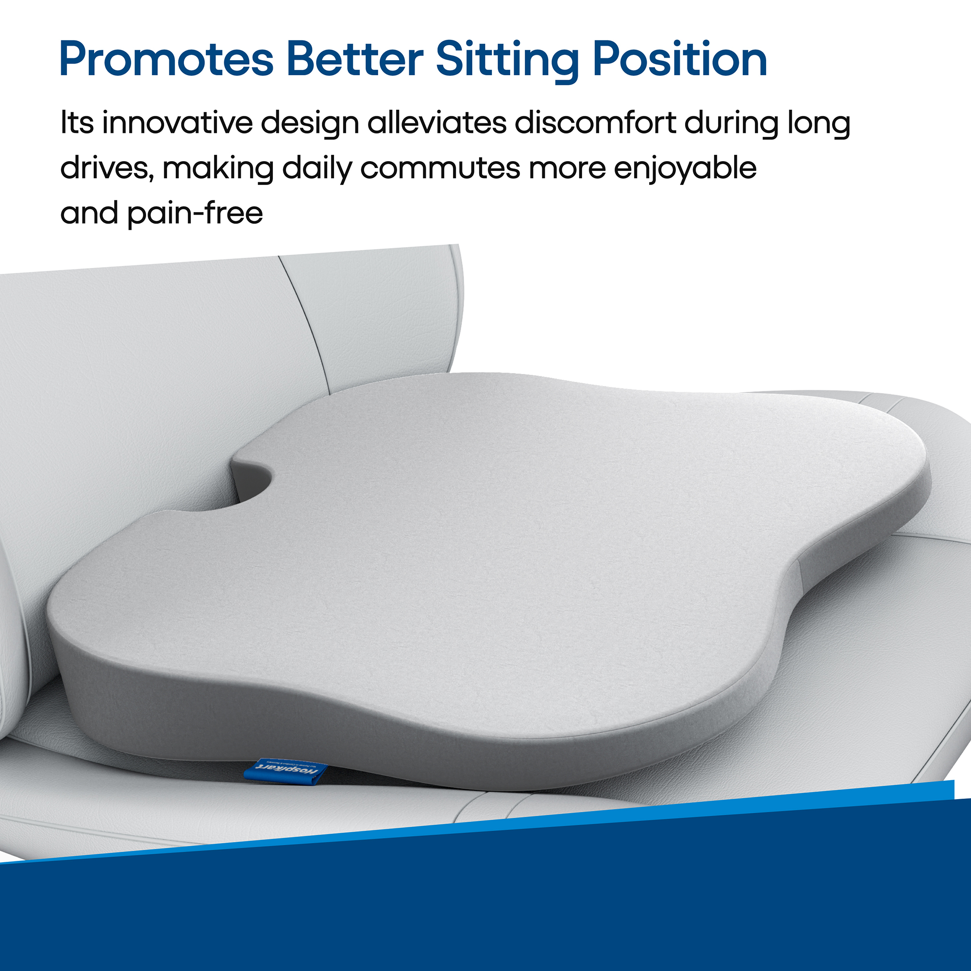 Enhance your driving experience with the HOSPIKART Cool Gel Memory Foam Car Seat Cushion. Ergonomically designed with a U-shaped cutout, this cushion relieves pressure on your lower back and tailbone, providing superior comfort during long drives and daily commutes. It helps alleviate discomfort from lower back pain, tailbone pain, numbness, and sciatica. Crafted from 100% premium memory foam, the cushion adapts to the shape of your body for a personalized fit. The durable, machine-washable air mesh cover allows airflow, keeping you cool and dry while driving. Its universal design fits all car models, complementing your car’s interior while promoting healthy sitting posture. Whether you’re driving to work or on a long trip, this cushion ensures a comfortable and pain-free ride.