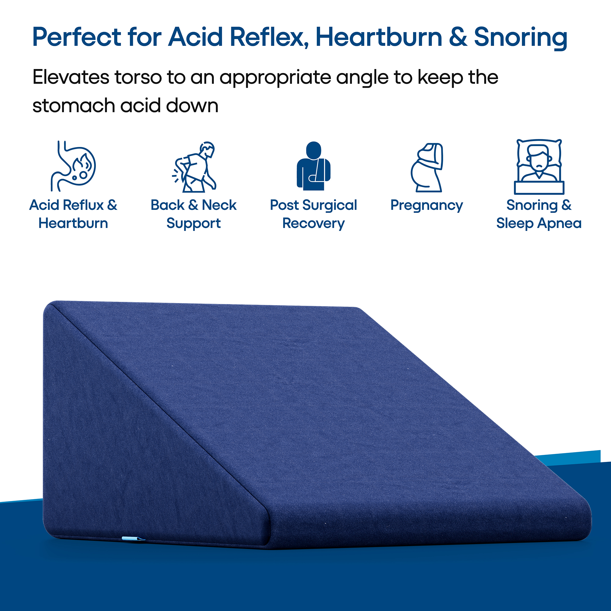Provides elevated support to relieve acid reflux, snoring, and back pain