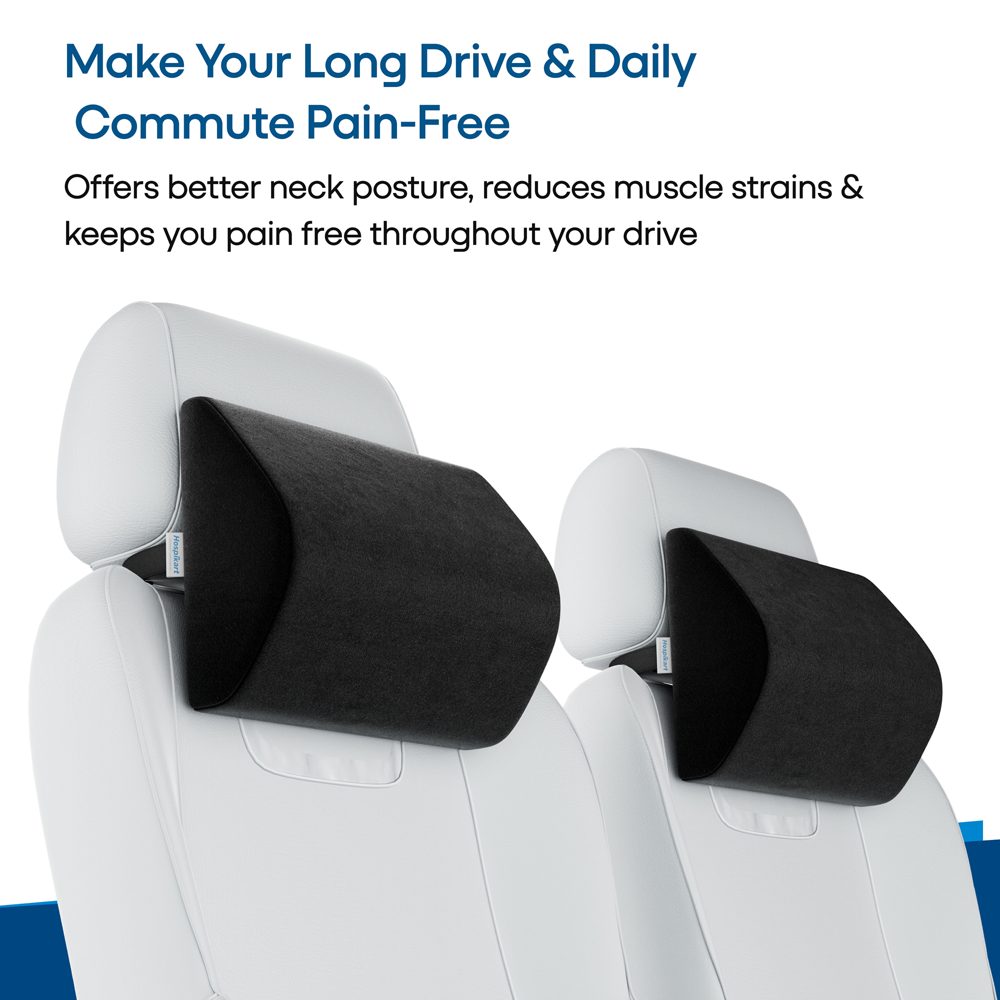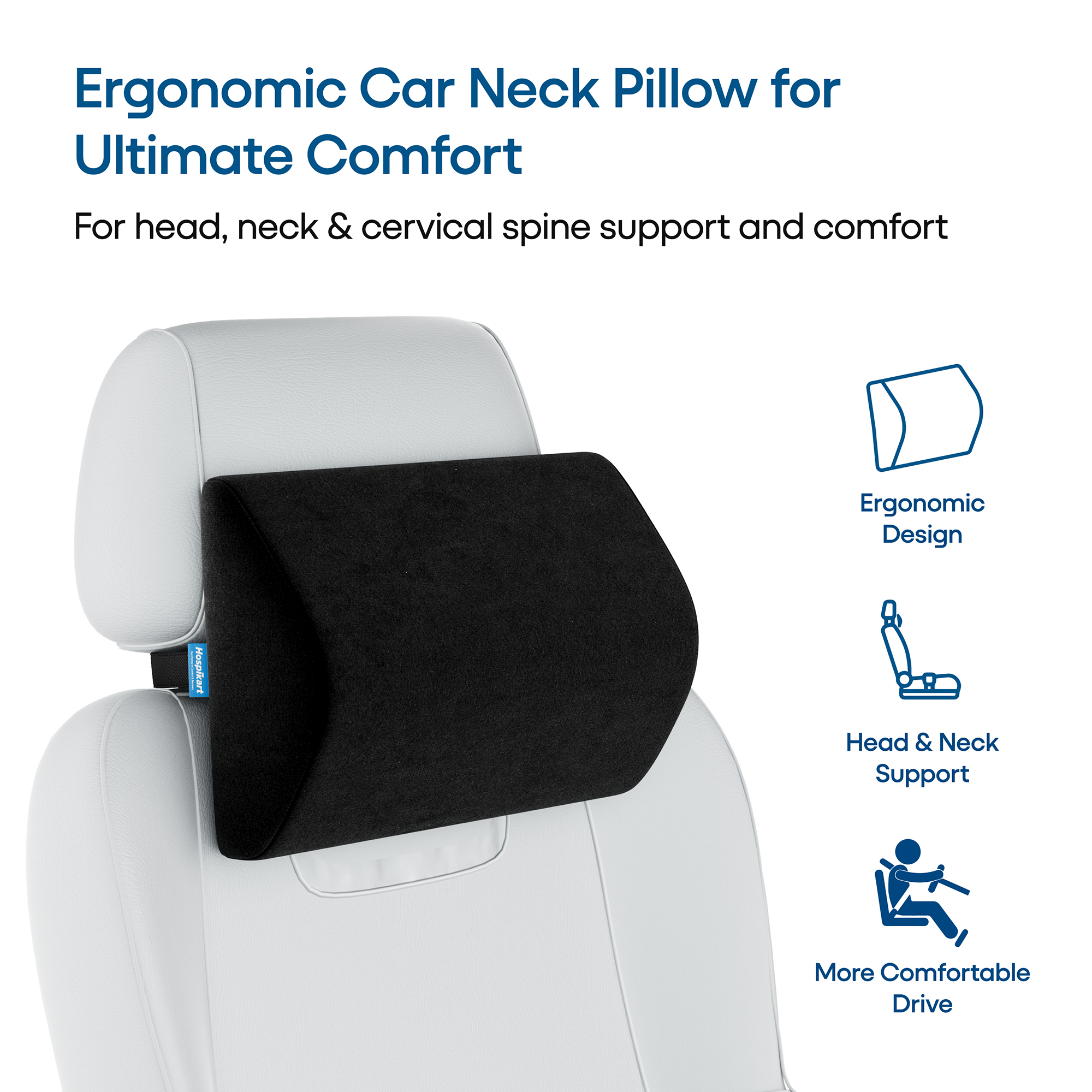 HOSPIKART Premium Cool Gel Memory Foam Car Neck Rest Pillow – Ultimate Comfort for Long Drives Experience superior neck support with the HOSPIKART Premium Cool Gel Memory Foam Car Neck Rest Pillow, designed to reduce neck pain and improve posture during long drives. Made from Cool Gel Memory Foam, it molds to your neck, retains its shape, and provides a refreshing cooling effect. The ergonomic design promotes proper spinal alignment, reducing stress on your neck and head. With a universal fit and secure elastic strap, it easily attaches to any car seat, ensuring a pain-free and comfortable ride every time.