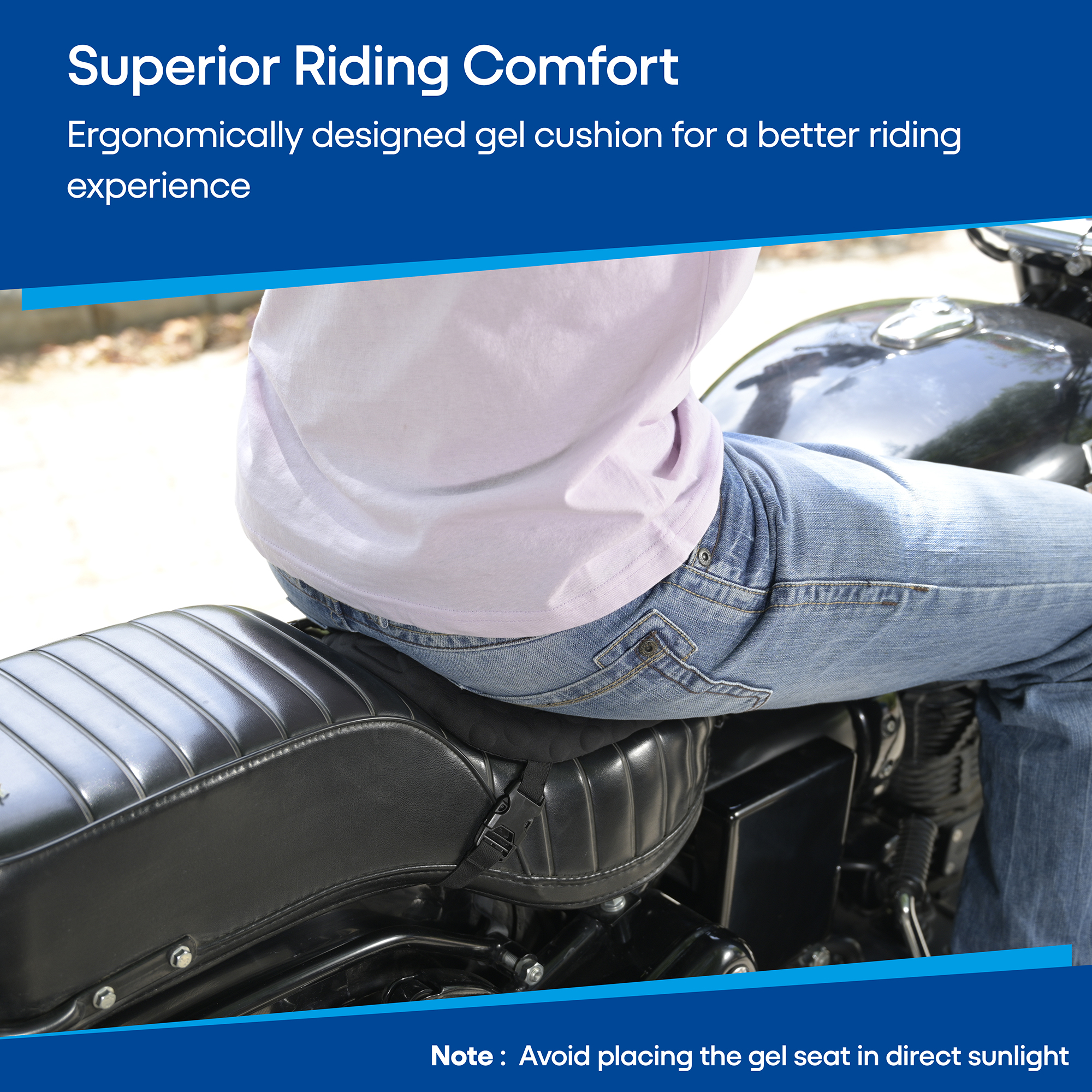 HOSPIKART Gel Motorcycle Seat Cushion – Ride in Comfort & Style Experience unmatched comfort with the HOSPIKART Gel Motorcycle Seat Cushion. Made from innovative gel material, this cushion evenly redistributes body pressure by reshaping to your body’s contour, preventing pressure sores and back pain during long rides. Its massaging gel design and shallow groove construction provide excellent support for the buttocks and sit bones, making your ride smooth and luxurious. Equipped with two adjustable elastic straps and buckles, this cushion can be easily installed or removed from any two-wheeler. It absorbs road jerks and micro shocks, relieving pressure from your sit-bones and muscles, ensuring a pain-free, enjoyable journey on long trips or daily commutes. Dust-proof, water-resistant, and washable, the cushion features an anti-skid bottom to stay securely in place.