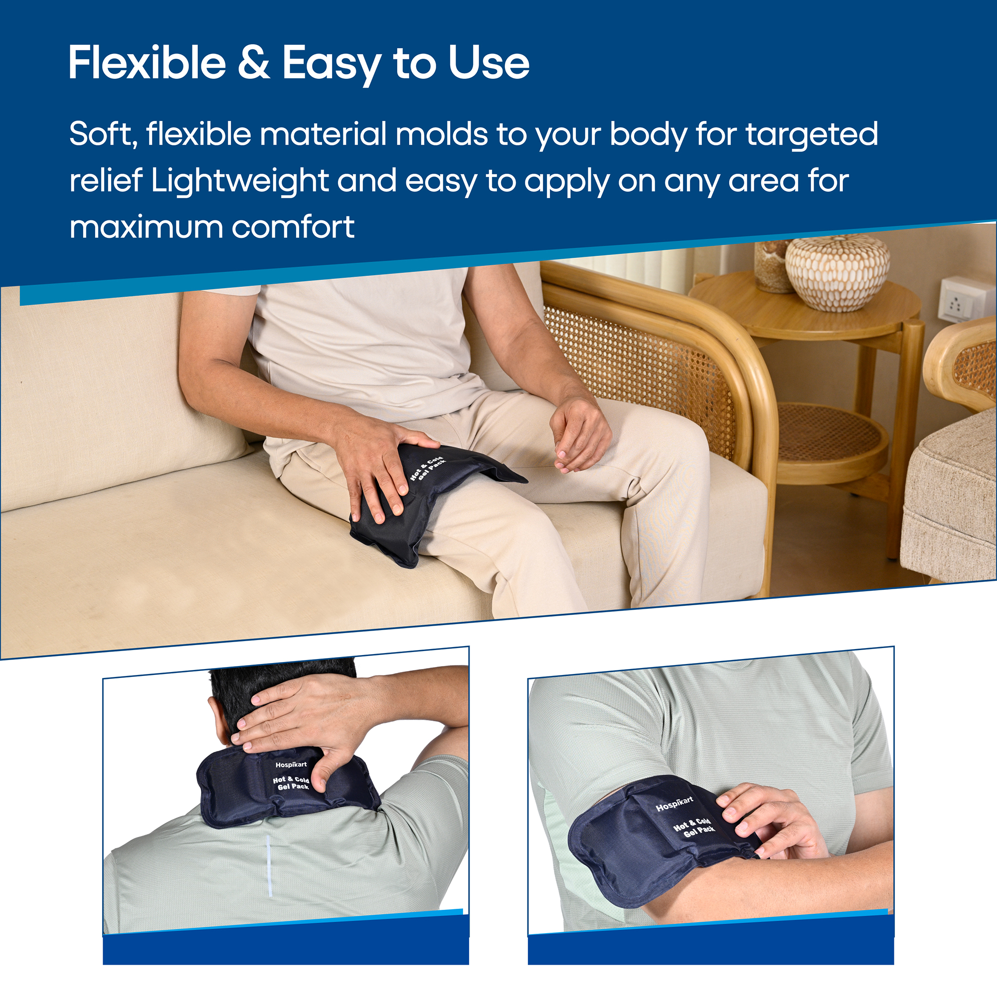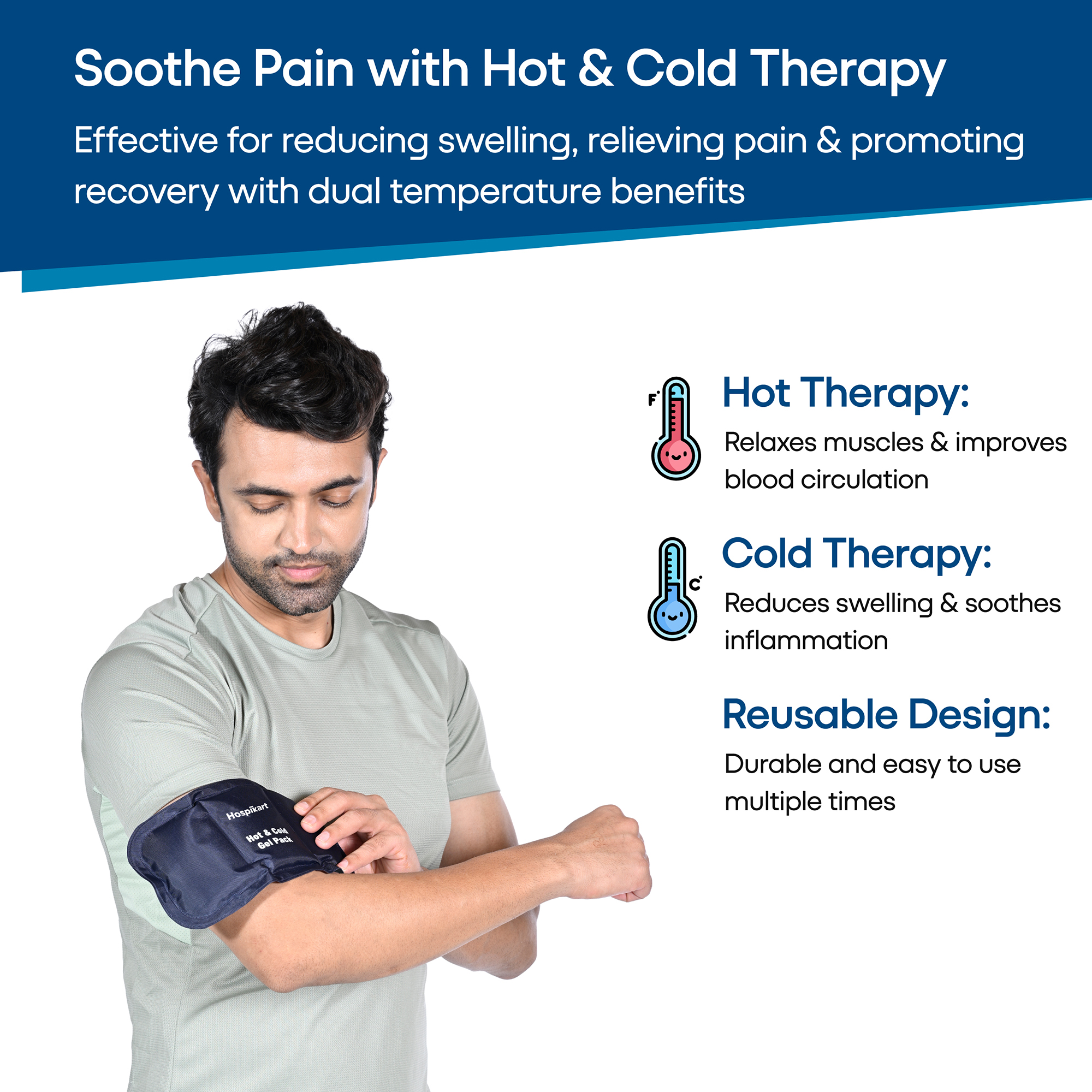 HOSPIKART Reusable Hot & Cold Gel Pack – Effective Pain Relief & Therapy Solution Experience soothing relief with the HOSPIKART Reusable Gel Pack, designed for both hot and cold therapy to help ease pain, inflammation, and muscle discomfort. Whether you need heat therapy for muscle relaxation or cold therapy to reduce swelling, this versatile pack is perfect for injuries, post-surgery recovery, sports strains, and first aid. The flexible gel filling ensures a comfortable fit on any body part, while the durable, leak-proof design guarantees long-lasting use.